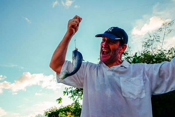 Die Lodge ist einfach nur toll. Palmenblattdächer, Tropenhölzer, Laufstege zwischen den Häusern und ein sehr freundlicher Empfang nehmen uns sofort für die Lodge ein. Das All Inclusive Angebot offeriert uns erst einmal Mittagessen. Alles Frisch alles lecker. Bisher war ich ja von der brasilianischen Küche eher enttäuscht. Dieses Mittagessen macht alles wett. All inclusive in der Juma Lodge heisst für uns 3 Tage lecker und gesund schlemmen. |