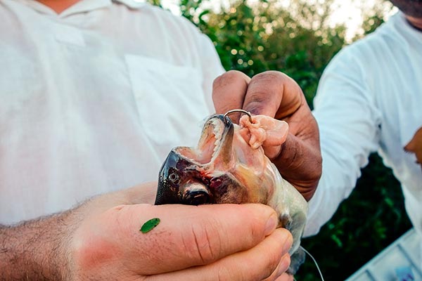 Mir gehen zwei Piranhas an den Haken und tatsächlich bekomme ich sie sogar heraus. An sonsten verfangen sich drei meiner Angelschnüren gnadenlos in der Unterwasserwelt. |
