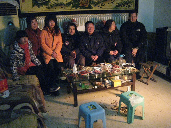 Vor dem kleinen Schrein gleich neben dem Eingang spricht die Dreigenerationenfamilie knieend ein Dankgebet. Familie Lu bemüht sich herzlich um uns. Obwohl die etwa 60 jährige Großmutter schwer krank ist, lassen Sie es sich nicht nehmen unsere Gastgeber zu sein. Mutter Lu hat sich heute nur wegen uns extra aus dem Bett gequält. Sie wird die nächsten zwei Tage zu schwach sein und ihr Lager nicht mehr verlassen können.