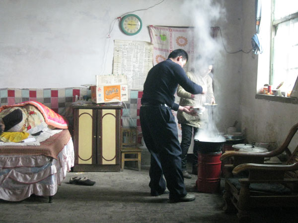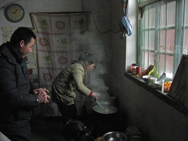 Lu Chaos Frau kocht auf einem ganz simplen Kohleofen.