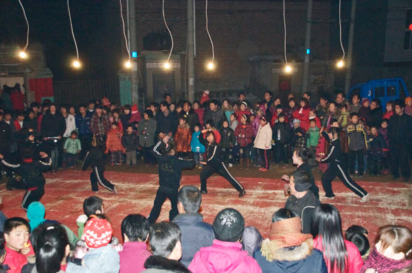 Die Wushuschule fährt heute schon einmal nicht zum großen Fest ins über eine Stunde entfernte Dorf. Sie müßten auf der offenen Ladefläche eines Lasters fahren. Bei dem Wetter völlig ausgeschlossen. Nicht das sie die Kälte schreckte. Es ist zu gefährlich wegen der vereisten Straßen.