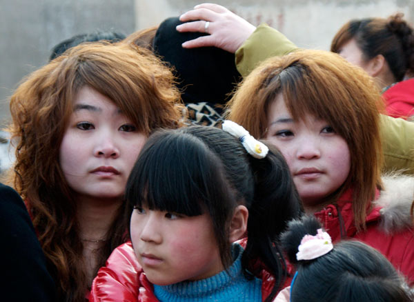 Links die Frau mit der Perücke ist Fans Frau die Lehrerin. Sie haben beide einen Sohn der natürlich auch Kampfkunst übt.