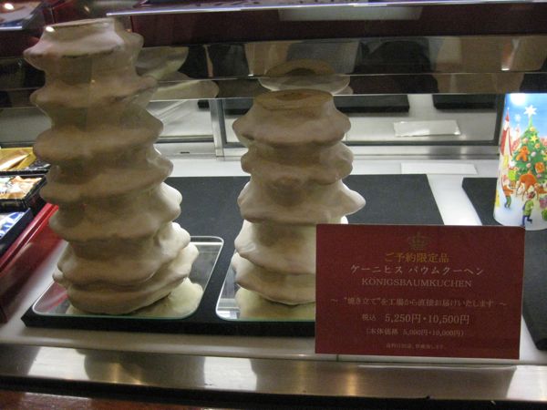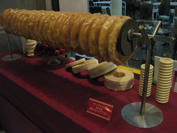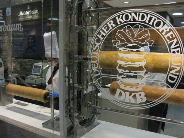 Unten wird verkauft. Baumkuchen aller Varianten und Meister Andho.