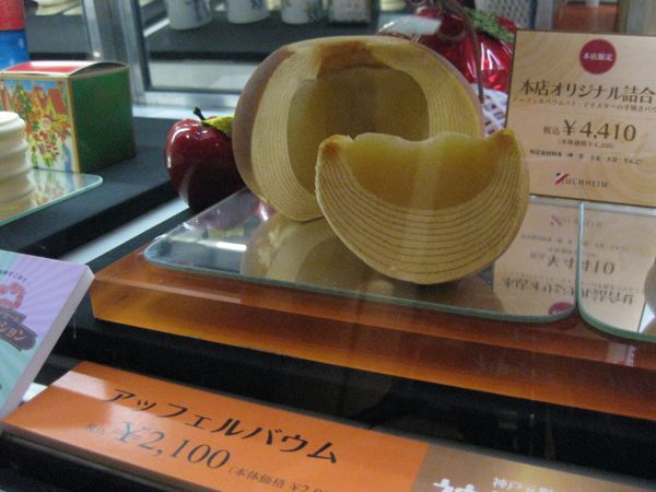 Und dann ist da noch so eine Spezialität. Apfelbaumkuchen. Ein Apfel in der Mitte umschichtet mit Baumkuchenschichten. Das sieht definitiv lecker aus. Ich jedenfalls habe so einen Baumkuchen noch nicht gesehen. Für meine Baumkucheliebhaberin zu hause ist das ein Muss.