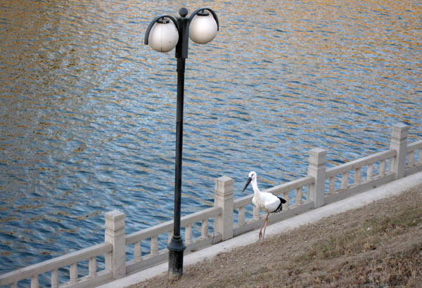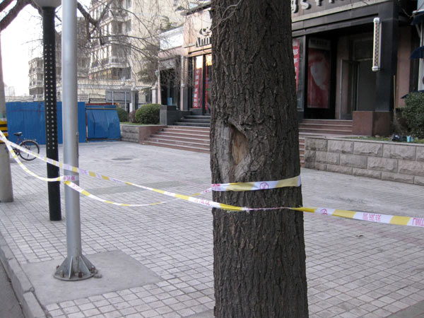 Zum Vordereingang. Mehrere Leute vom Nachbarschaftskommitee mit Armbinden ausgestattet patroulieren auf beiden Seiten der Straße als wir das erste Mal vorbeifahren. Wenden. Sie sind verschwunden. Offensichtlich ist die Entscheidung diese Demonstration der Wachsamkeit zu beenden, aus welchen Gründen auch immer eben getroffen worden. Drei Kamerateams sind schon da als wir dann doch vor dem Haupteingang aussteigen. Natürlich fragen wir ob wir das Gelände betreten dürfen und selbstverständlich wird es uns verwehrt. Probieren mussten wir es aber. Ein paar Passanten geben uns Vox Pops. Sie gehen, im Gegensatz zu Chinas Offiziellen, recht gelassen mit dem Thema um. Natürlich wissen sie Bescheid und natürlich unterstützt keiner die Nobelpreisverleihung. Der Mann mit der grünen Jacke macht sich eifrig Notizen, tut dann aber auch seine Meinung kund.