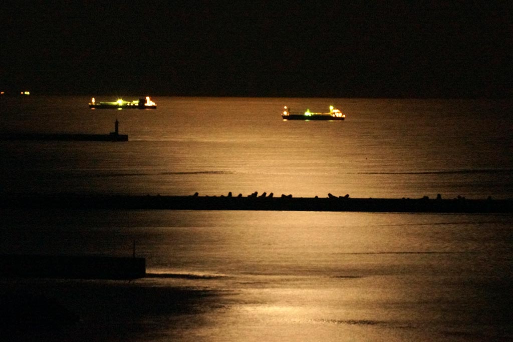 Die zweite Übernachtung unserer Drehreise für "Fukushima Lüge 2" ist im Onahama Hotel. Es liegt außerhalb der Sperrzone um das geschrottete Atomkraftwerk und für uns logistisch günstig. Vom Hotelzimmer aus habe ich einen Blick auf den Pazifik. Auf dem ersten Bild sieht man Tintenfisch-Fang-Schiffe. Sie fahren am Abend raus und treiben dann bis zum Morgen wie träge Krokodile aber hell erleuchtet vor der Küste. Am Morgen schieben sie sich wieder in den Hafen. Dieser Ausblick ist einfach wunderschön.