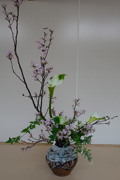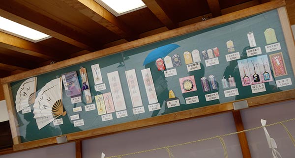 | Am eigentlichen Schrein stehen die Leute diszipliniert an um sich vor dem Schrein zu verbeugen. Sie betreten ihn nicht. An der Umzeunung des Schreins steht eine Vitrine mit Arangements frischer Blumen. Das muss man einfach genießen. |